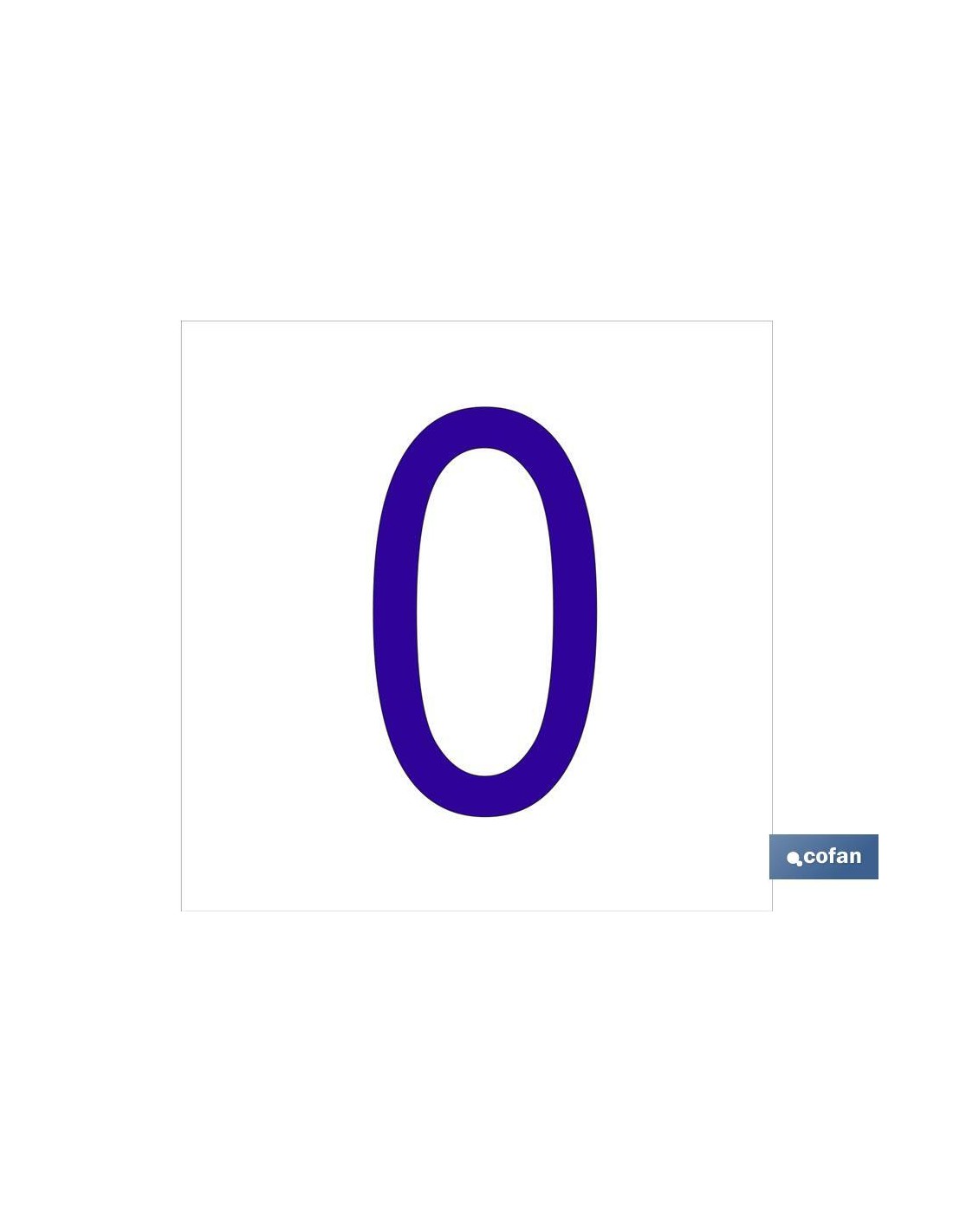 0 Número en glasspack adhesivo con el fondo blanco y carácter azul con medida en 62 x 62mm. El diseño de la señal puede variar, pero en ningún caso se variará el significado de la misma.