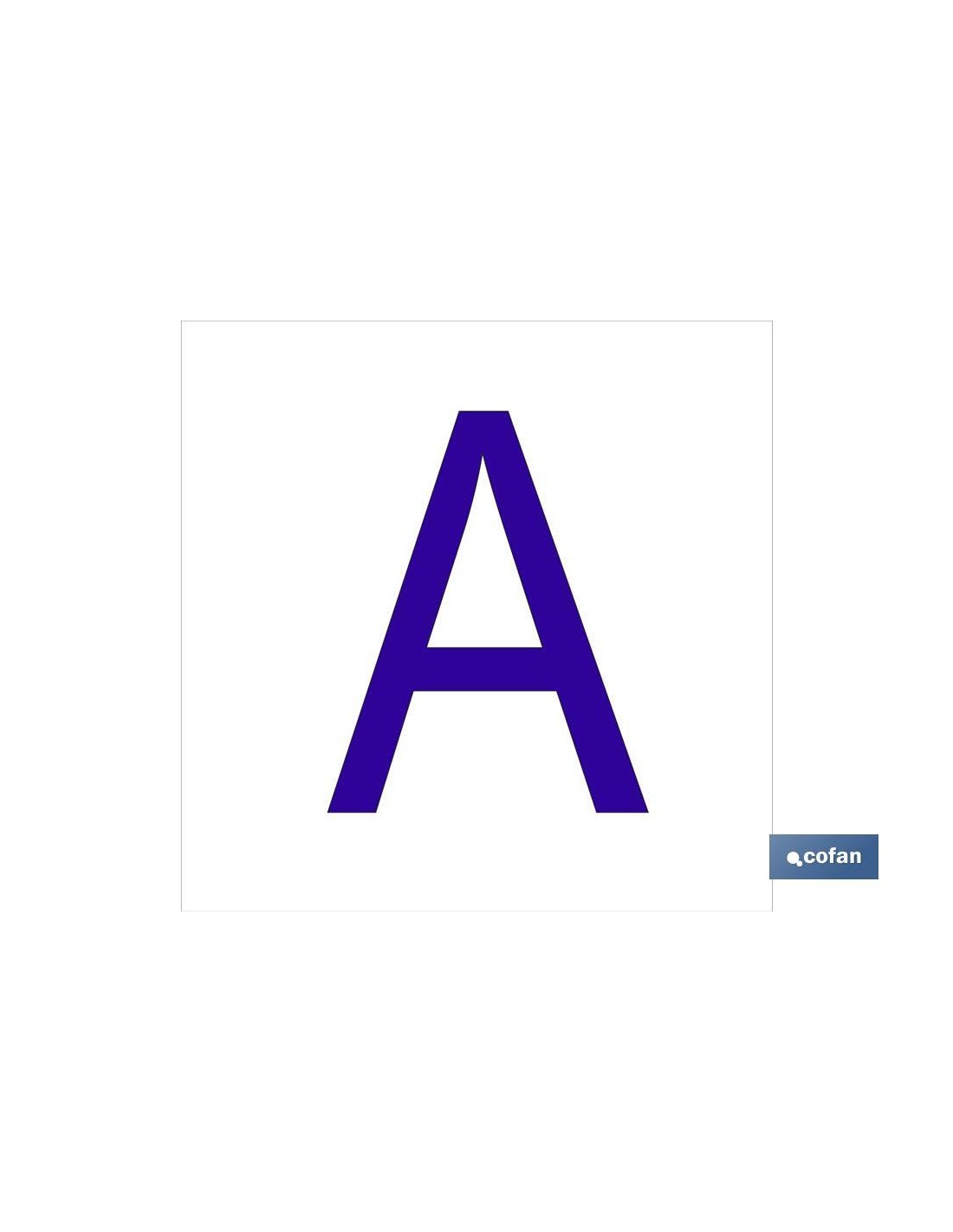 A Letra en glasspack adhesivo con el fondo blanco y carácter azul con medida en 62 x 62mm. El diseño de la señal puede variar, pero en ningún caso se variará el significado de la misma.