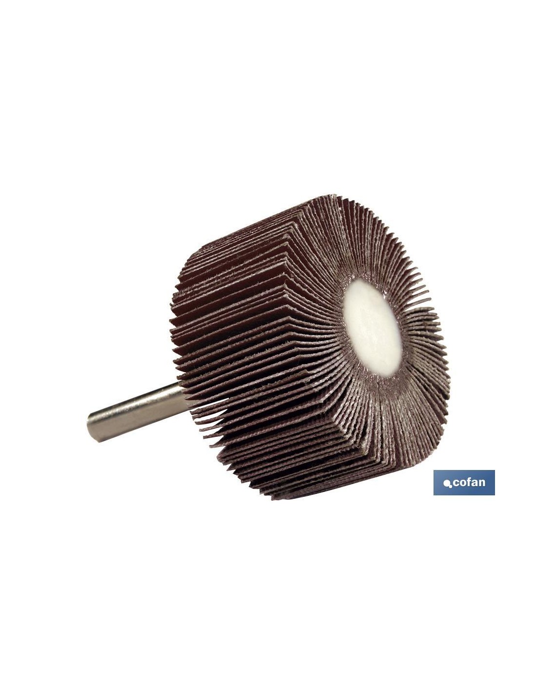 Abanicos de lija con mango (cepillos láminas con eje de 6 mm). Ideal para usar sobre acero inoxidable, acero aleado, chapa de acero y tubos de acero conformado.