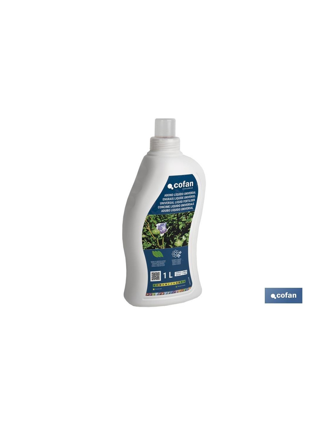 Abono líquido para usar en una gran variedad de plantas: verdes, con flores, de interior o de exterior. Se trata de un abono con nutrientes básicos para muchas especies. Destaca su gran aporte de multinutrientes y su complejo vitamínico que mejoran la fotosíntesis de las plantas, proceso básico para que las plantas produzcan nutrientes. Se puede usar como abono foliar y radicular. Abono líquido universal con capacidad de 1 litro.