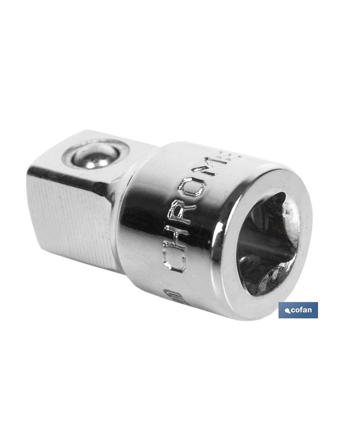 Adaptadores para llaves de vasos métricos para carracas, destinados para adaptar los vasos de las siguientes medidas: 1/4, 3/8, 1/2, 3/4 y 1. Fabricación en acero cromo vanadio.
