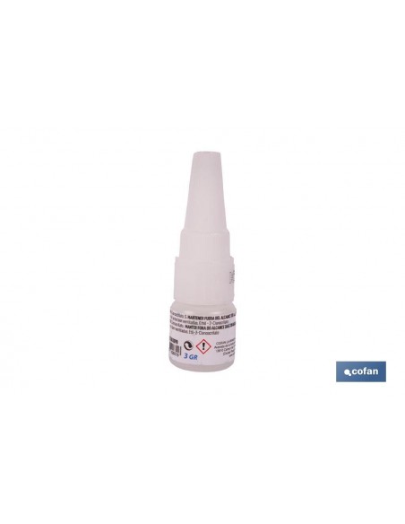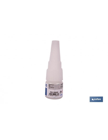 Pegamento adhesivo instantáneo de cianoacrilato transparente, disponible en formato de 3, 20 y 50 gramosEl adhesivo de cianoacrilato es de media viscosidad y se utiliza especialmente para unir madera, aunque también puede utilizarse sobre otras superficies como plásticos, caucho, goma, metales, porcelana, etc. Es ideal para proyectos de bricolaje o reparación. Mediante el uso de este producto, conseguirás la unión necesaria de manera rápida y eficaz. Advertencias: Provoca irritación cutánea y ocular grave. Puede irritar las vías respiratorias. Mantener fuera del alcance de los niños. No respirar los vapores. Evitar el contacto con los ojos, la piel o la ropa. Se adhiere a la piel y a los ojos en pocos segundos. Contiene ciano de etilo.