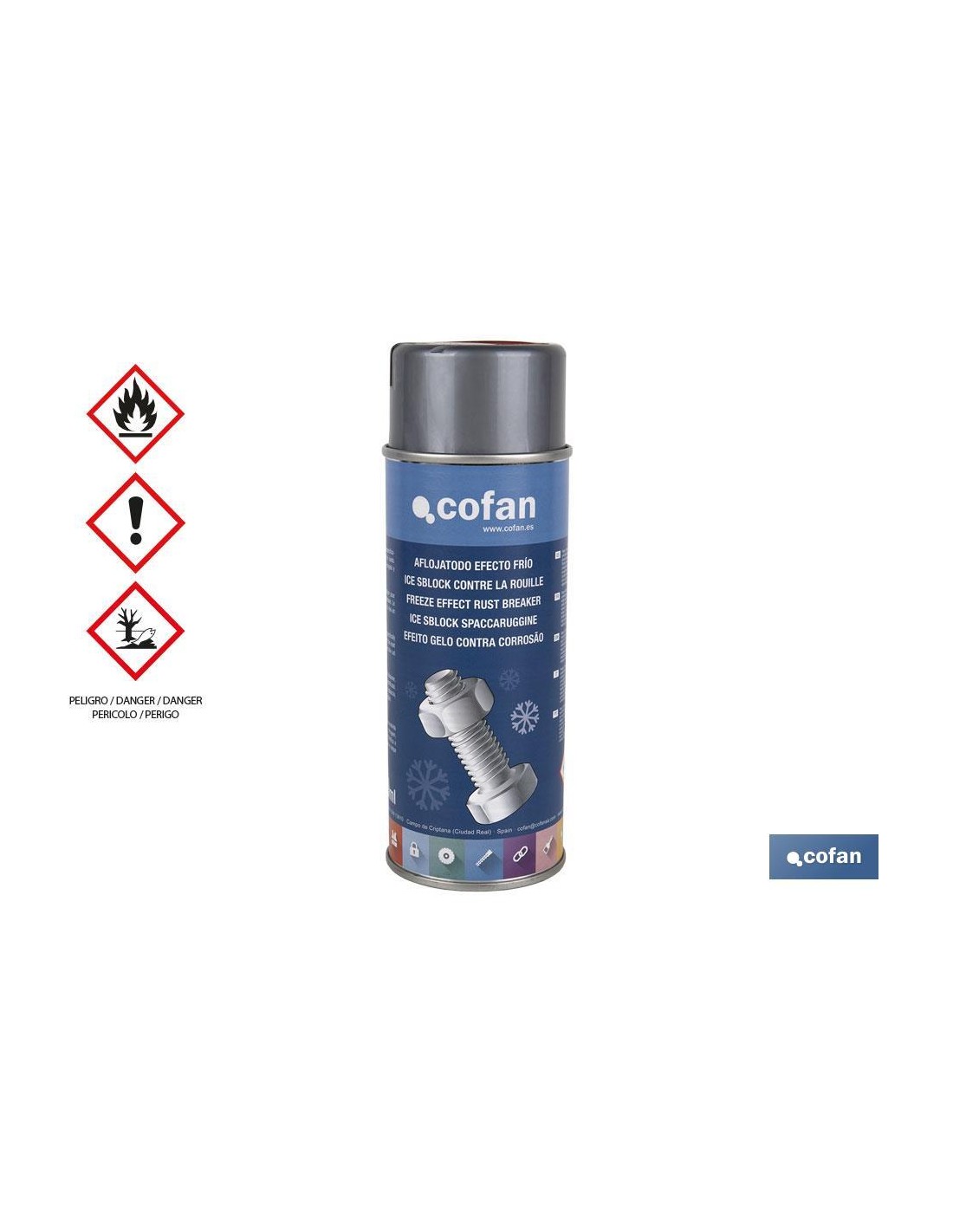 Aflojatodo con efecto frío de 400 ml. Aflojatodo multiusos desoxidante con efecto hielo de enfriado intenso de las piezas a aflojar o separar. Protege las zonas de aplicación del óxido, limpia metales y es efectivo contra la humedad. Este producto posee propiedades desbloqueantes, un alto poder desoxidante y un efecto muy prolongado. Produce una dilatación térmica diferente entre el óxido y la subcapa. Aerosol extremadamente inflamable. Recipiente a presión: puede reventar si se calienta. Puede provocar somnolencia o vértigo. Tóxico para los organismos acuáticos, con efectos nocivos duraderos. La exposición repetida puede provocar sequedad o formación de grietas en la piel. Evitar su liberación al medio ambiente. Mantener fuera del alcance de los niños. Mantener alejado de fuentes de calor, chispas, llamas abiertas o superficies caliente. No fumar. No pulverizar sobre una llama abierta u otra fuente de ignición. Recipiente a presión: no perforar ni quemar, aun después del uso. Proteger de la luz del sol. No exponer a temperaturas superiores a 50º C / 122º F. Contiene Pentano. Eliminar el contenido o recipiente conforme a la reglamentación regional.
