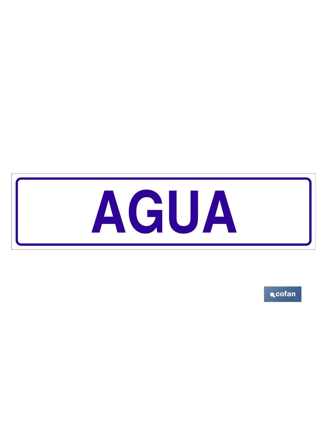 Señal informativa de glasspack adhesiva con texto agua. Tamaño a elegir. El diseño de la señal puede variar, pero en ningún caso se variará el significado de la misma.