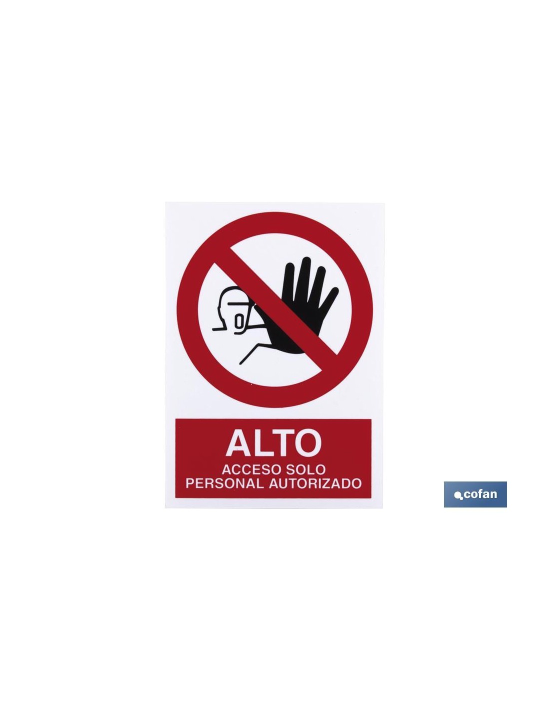 ALTO acceso solo personal autorizado. El diseño de la señal puede variar, pero en ningún caso se variará el significado de la m