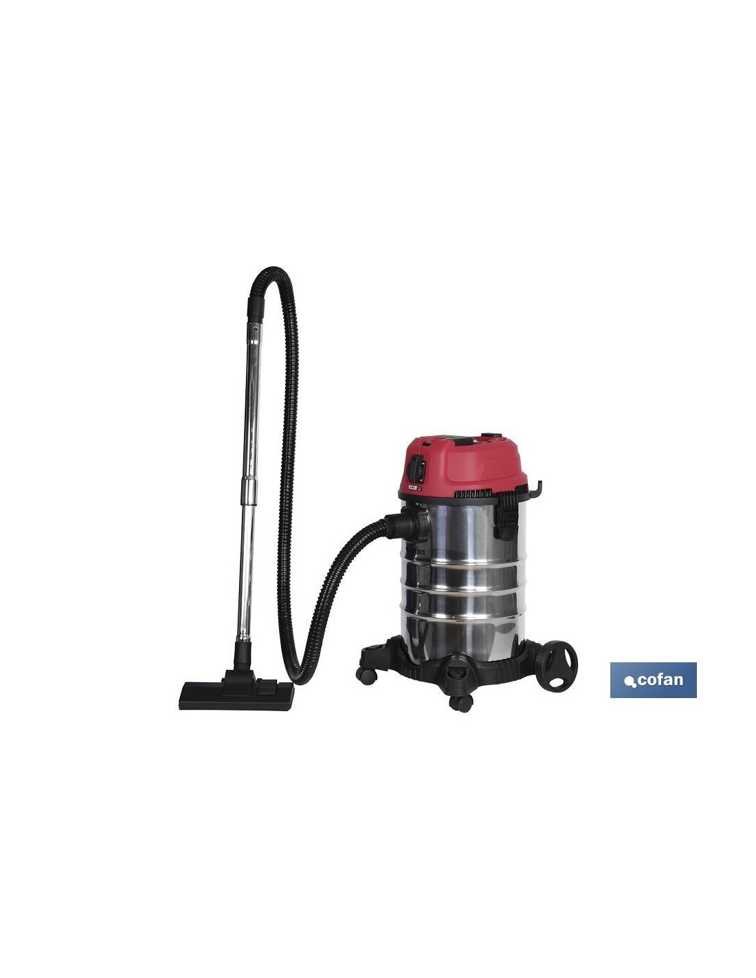 El aspirador Profesional Modelo Siroco está indicado para entornos industriales, ya sean secos o líquidos, gracias a su gran fuerza de succión.Su depósito cuenta con una capacidad de 30 litros y el aspirador posee una potencia de 1200W.Su construcción es robusta, fabricada en acero inoxidable, con un diseño versátil que reduce el ruido. En su base, el aspirador profesional tiene 2 ruedas de 12 cm de diámetro y 2 ruedas más pequeñas de 4 cm de diámetro.Cuenta con la función de soplado, multifunción y autolimpieza de filtro, además de una toma adicional de corriente incorporada y un cable de alimentación extra largo.Compuesta por tubo telescópico y interruptor de autolimpieza de filtro.Accesorios incluidos: pack de 1 bolsa, 2 ruedas delanteras, 2 ruedas traseras grandes, tubo de aluminio de cenizas, boquilla para rincones, controlador de aire, tubo telescópico de acero, filtro Hepa para líquidos, filtro esponja y manguera de metal.