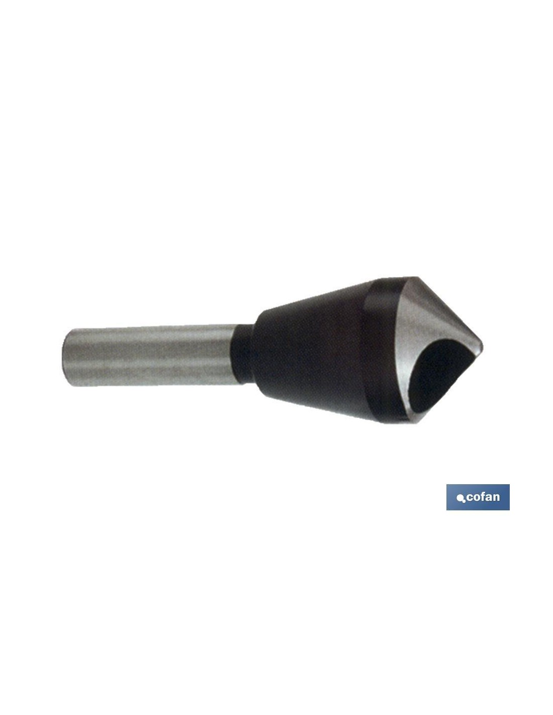 Avellanador cónico 90° con agujero en acero rápido rectificado.
