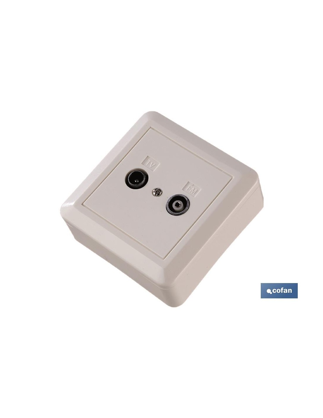 Base cuadrada en superficie para toma de Antena TV. Apto para 1 toma conexión hembra y 1 toma macho. Color Blanco.