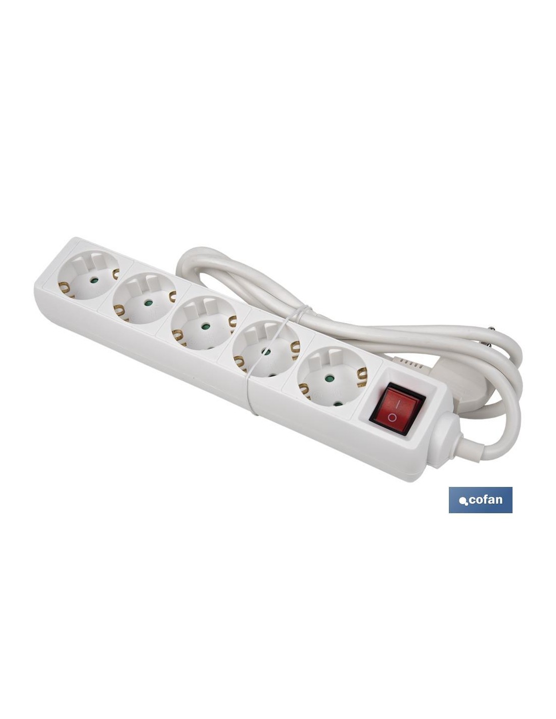 Regleta eléctrica con múltiples tomas para enchufes y cable de sección de 3 x 1,5 mm. Ladrón múltiple con varias salidas y 1,4 metros de longitud de cable. Incluye conmutador de encendido/apagado luminoso. 16A-250V
