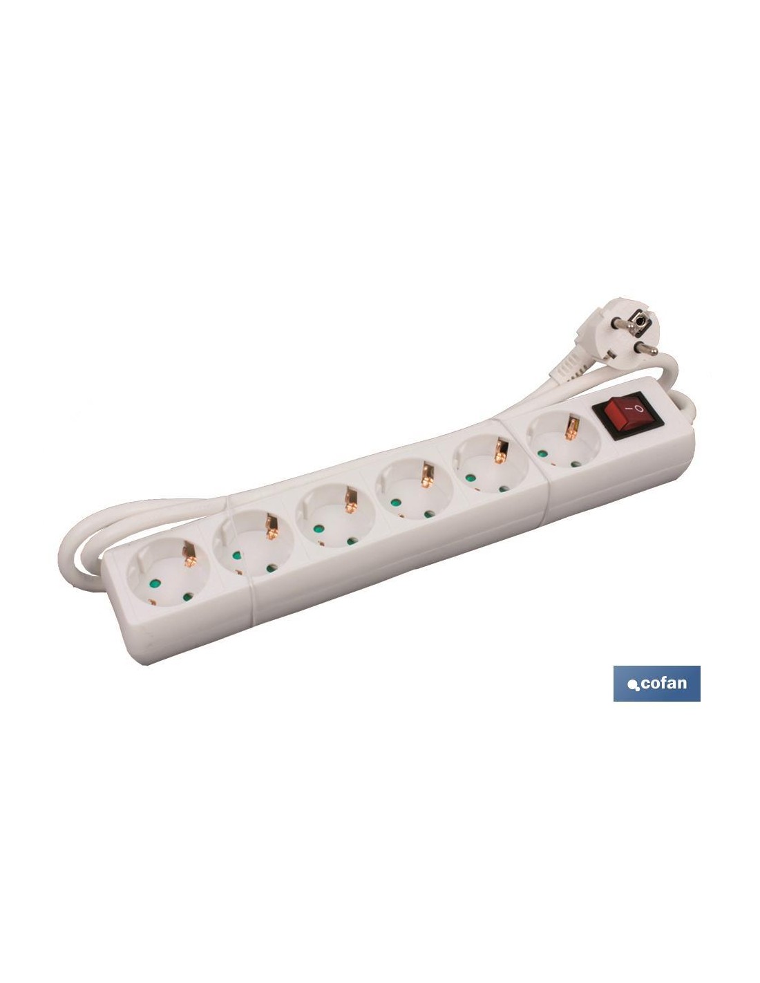 Regleta eléctrica con múltiples tomas para enchufes y cable de sección de 3 x 1,5 mm. Ladrón múltiple con varias salidas y 1,4 metros de longitud de cable. Incluye conmutador de encendido/apagado luminoso. 16A-250V