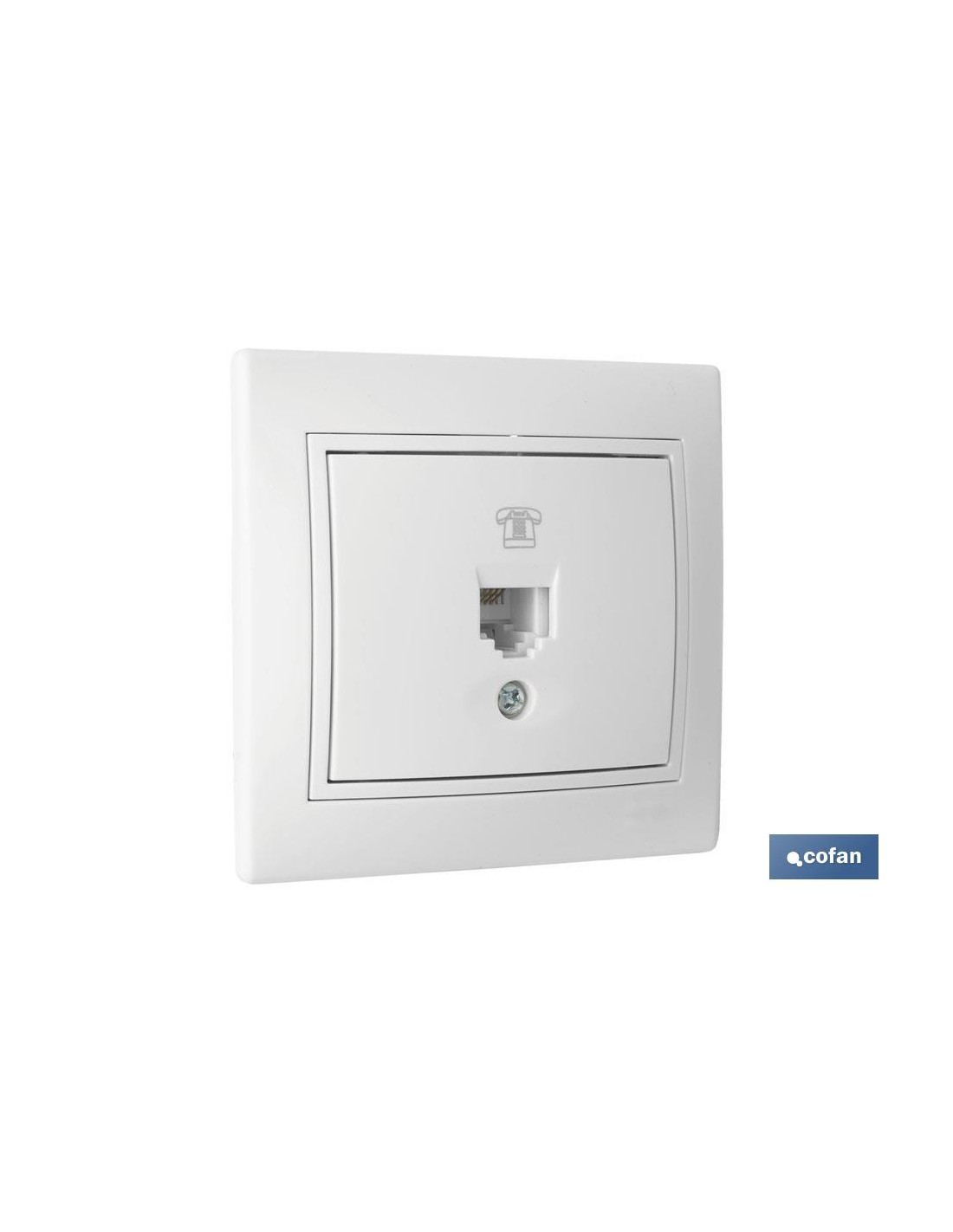 Mecanismo base para teléfono RJ11 de empotrar en color blanco. Compatible con todas las cajas de conexiones. Modelo Pacific.