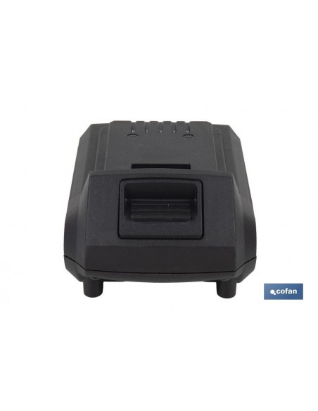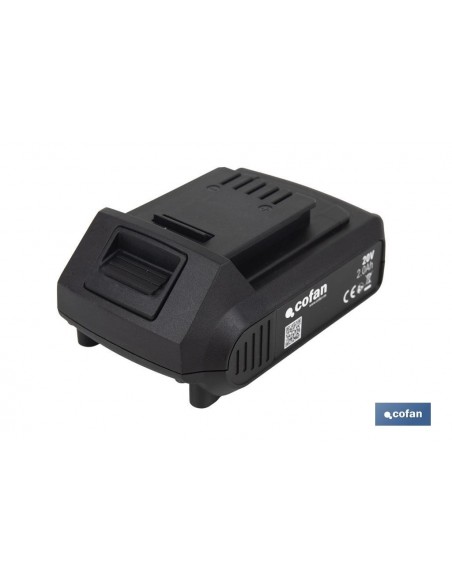 Batería recargable Li-ion de 20 V y 2.0 Ah diseñada exclusivamente para el sistema 1 For-All de herramientas Cofan. Esta batería está perfectamente adaptada para ser utilizada con todas las herramientas a batería de 20 V de Cofan, garantizando compatibilidad y eficiencia sin igual. Su tecnología avanzada de iones de litio ofrece una alta capacidad de carga y baja autodescarga, lo que significa que puedes trabajar más tiempo sin preocuparte por la pérdida de energía. Además, esta tecnología elimina el efecto de memoria, asegurando que la batería mantenga su máxima capacidad de carga tras cada uso. Equipada con sistema de protección que previene daños debido a sobrecargas, sobretensiones y cortocircuitos, extendiendo la vida útil del producto y asegurando un uso seguro en todo momento. Cuenta con un práctico indicador de nivel de carga que te permite monitorizar con precisión la energía restante para que nunca te quedes sin potencia inesperadamente.
