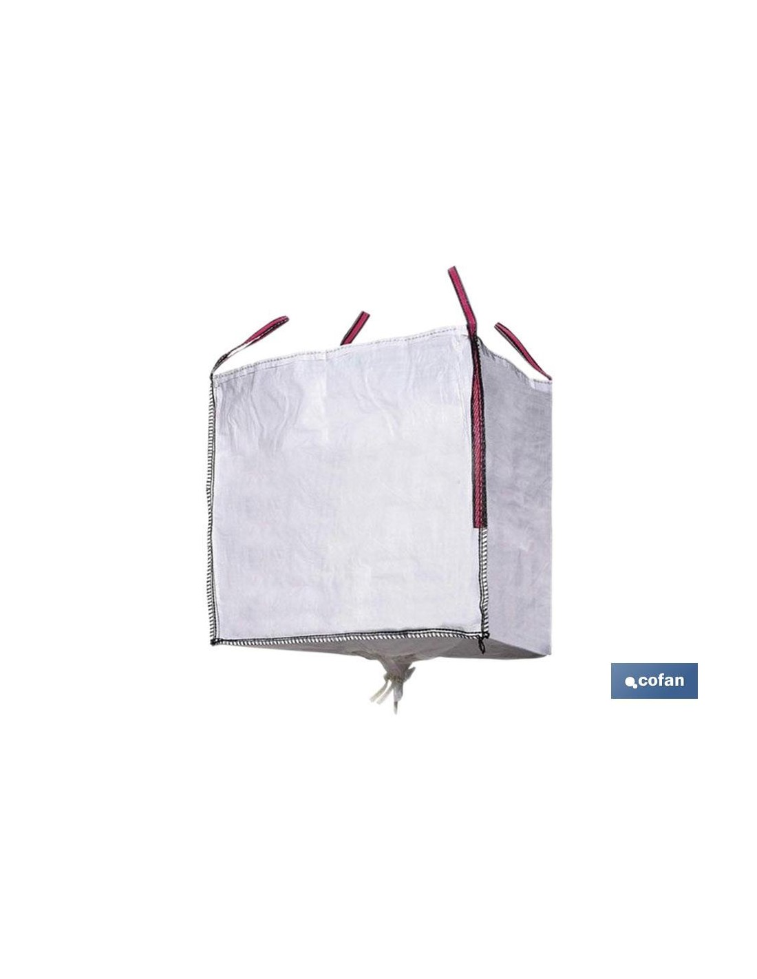 Saco grande de escombros cúbico que permite una carga máxima de seguridad de 1000 kg y su factor de seguridad es 5:1. Posee una apertura en la parte inferior para la descarga del contenido. Ideal para mover escombros, basuras o residuos. Recomendable para procesos relacionados con el transporte y la construcción. Resiste golpes e impactos. Gran capacidad. La resistencia del saco permite transportar el contenido de manera fiable y segura, sin preocupación de desgaste o rotura. También puede utilizarse como un elemento de almacenamiento de otro tipo de objetos o en mudanzas en general. Posee asas en cada esquina para facilitar su movilidad. Se pliega de forma sencilla y es versátil.