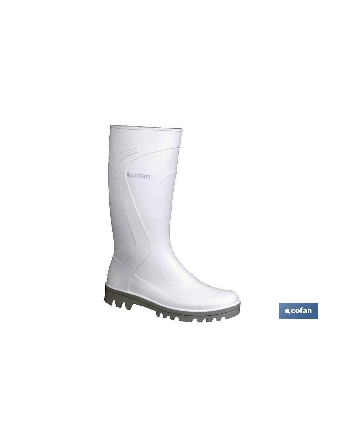Botas de agua blancas fabricadas en PVC (UNE-EN 20347-1). Suela antideslizante y resistente a la abrasión. Resistente a las Grasas, Aceites y los Hidrocarburos. Disponen de soporte interior textil para su mayor comodidad. Tallas disponibles desde la 36 a la 47. Es una bota de alta calidad, muy cómoda y fácil de llevar. Pueden usarse para todo tipo de sectores y trabajos.