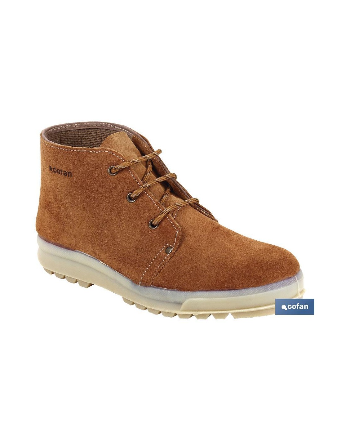 Botas Trekking en piel, Modelo Morella, en color marrón camel. Cuentan con una suela de color caramelo antideslizante y el cierre es de cordones. Tallas disponibles desde la 38 hasta la 46. Son ideales para cualquier época del año y sector de trabajo. Son de muy buena calidad, ofreciendo al usuario comodidad y resistencia.