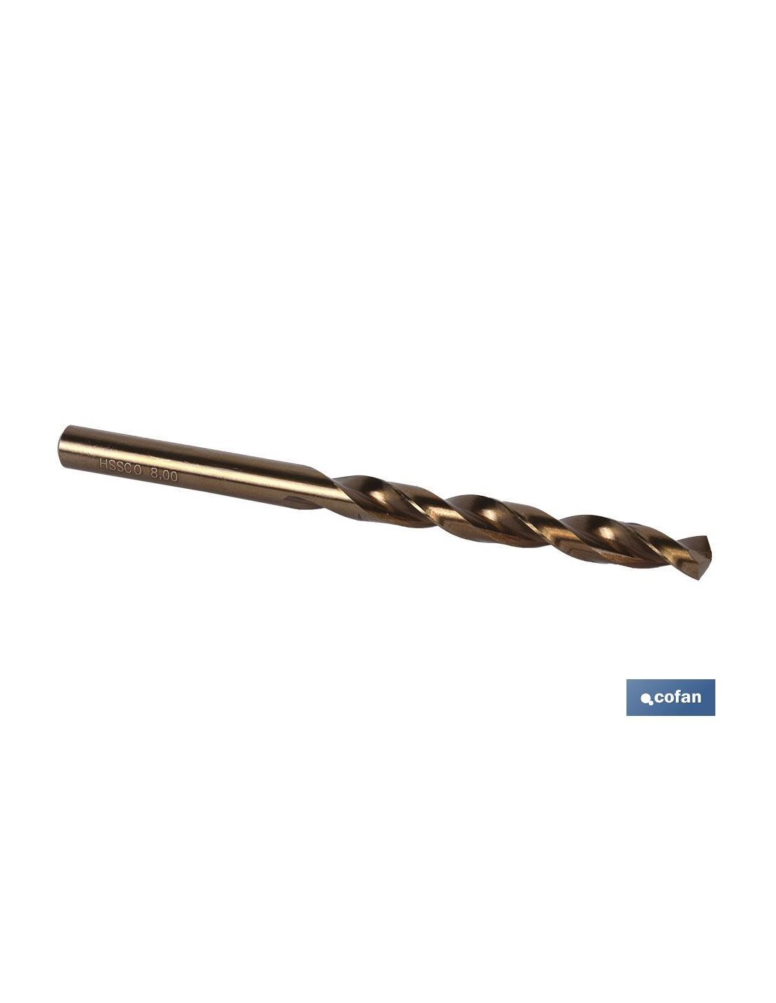 Brocas de cobalto alto rendimiento rectificada HSS CO DIN 338N 118º. Para acero y hierro. Color ocre brillante