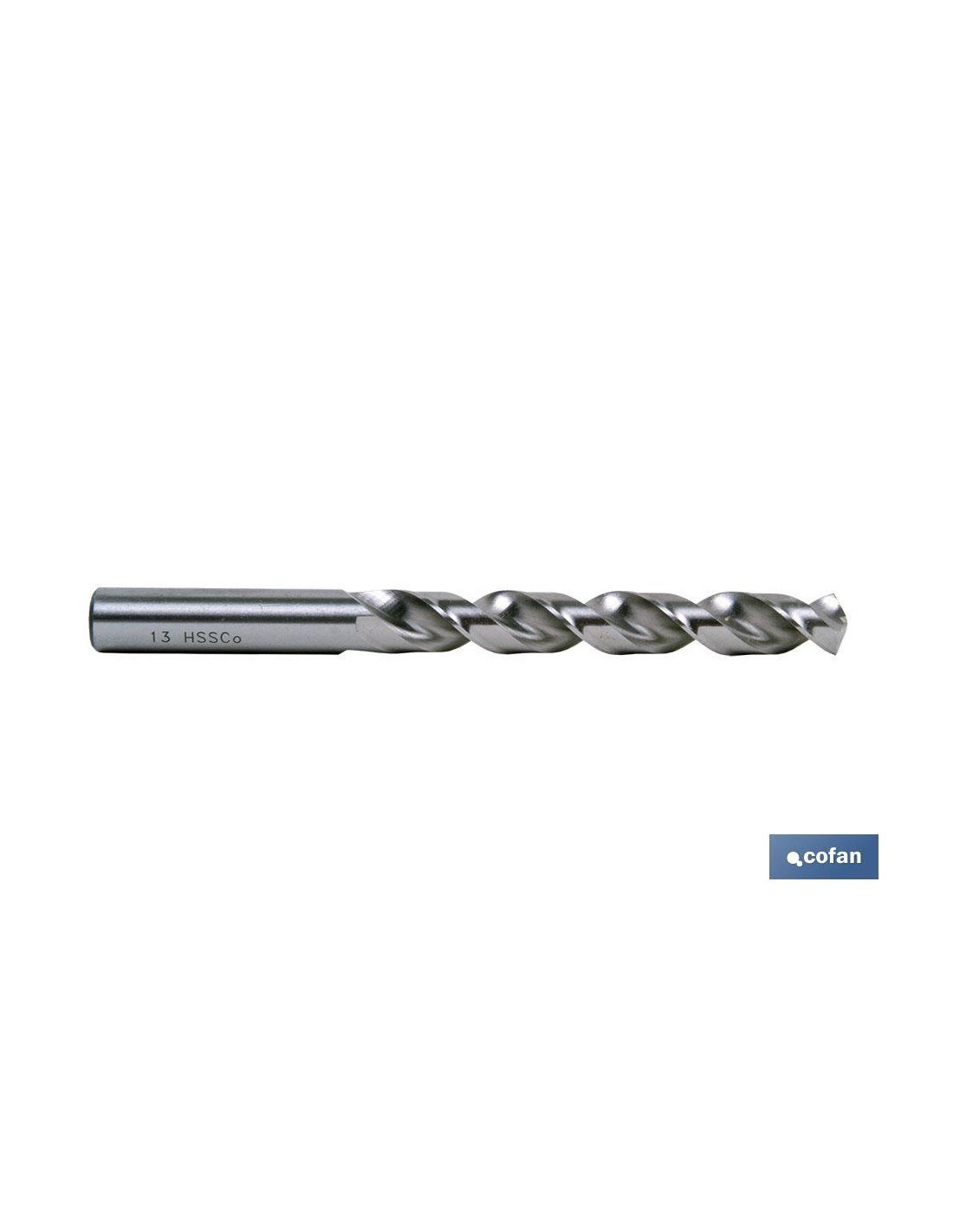 Brocas para acero inox de alto rendimiento rectificada con un 5% de cobalto. HSS CO DIN 338N 135º. Para acero y aceros inox. Color plata brillante