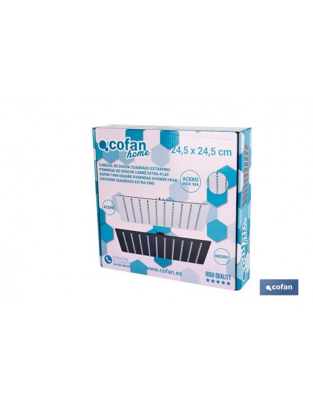 CABEZAL DE DUCHA CUADRADO EXTRAFINO DE ACERO INOXIDABLE 304 NEGRO MATE 24,5 X 24,5 CM (PACK: 1 UDS)