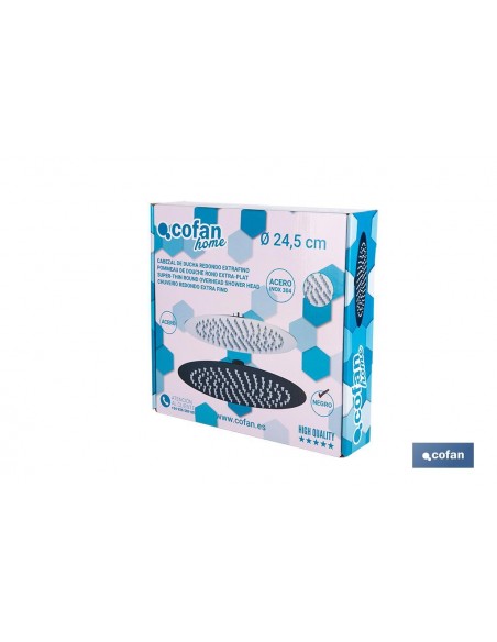 CABEZAL DE DUCHA REDONDO EXTRAFINO DE ACERO INOXIDABLE 304 NEGRO MATE Ø24,5 CM (PACK: 1 UDS)