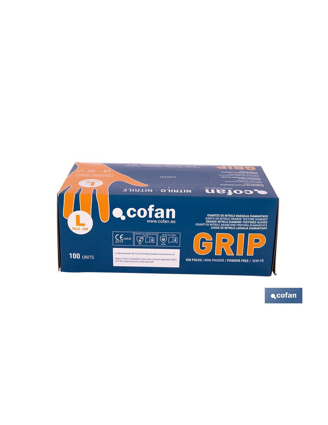 Guantes de nitrilo con textura diamantada de color naranja que proporcionan un agarre superior. Son ideales para usos mecánicos, fábricas, industrias y agricultura.Estos guantes son de uso ambidiestro y cuentan con textura diamantada en ambos lados. Los guantes están libres de polvo, de látex y de silicona.Estos guantes de nitrilo, con posibilidad de reutilización, son de alta calidad y cuentan con una resistencia muy superior para evitar roturas, lo que les permite ser lavados en numerosas ocasiones para prolongar su vida.Las cajas son de 100 guantes desde la talla S hasta la XL y tienen un peso de 8,5 gramos.Cumplen con las normas EN 374, EPI Cat. III Reglamento (UE) 2016/425. AQL de 1,5 y certificado para uso alimentario.