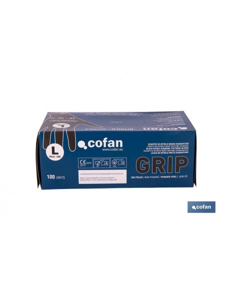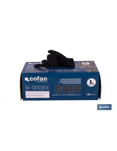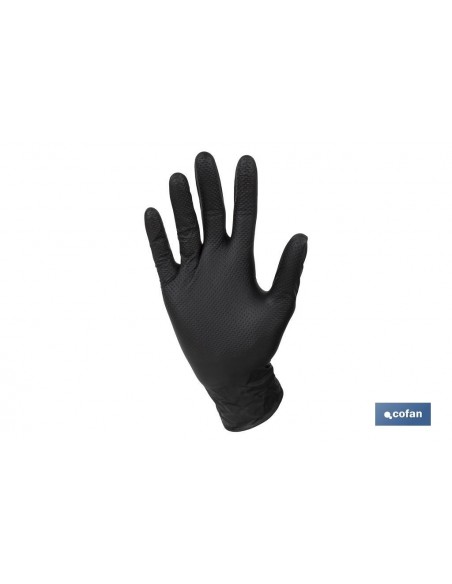 Caja de 100 guantes de nitrilo con textura diamantada | Tallas de la S a la XL | Color: Negro