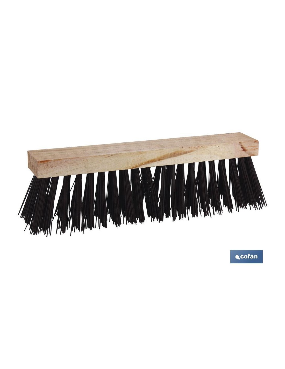 Cepillo de Barrendero con fibra dura y 40 cm de ancho. Fabricado en PVC y madera. Cepillo multiusos para barrer calles, tierra, gravilla, etc. Ideal para suelos rugosos o exteriores. Para uso doméstico o profesional. Producto resistente y muy duradero.