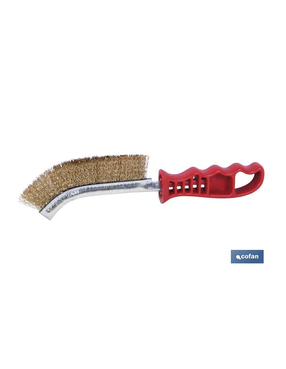 Cepillo Universal de acero latonado. Longitud: 240 mm de largo. Cepillo manual de gran calidad para un excelente rendimiento y precisión en el trabajo desempeñado. Buen rendimiento en tareas de limpieza ligera. Ideal para uso en lugares de difícil acceso. Excelente para trabajar con cobre, plástico, plomo, aluminio, vidrio y acero. Alambre recto con un diámetro de 0,35 mm. Las medidas del producto son: 240 x 60 x 20 mm. Peso: 0,11 kg. Útil para la limpieza ligera de manchas y suciedad dura desde superficies de metal y piedra. Limpieza de soldaduras y limpieza manual en general.