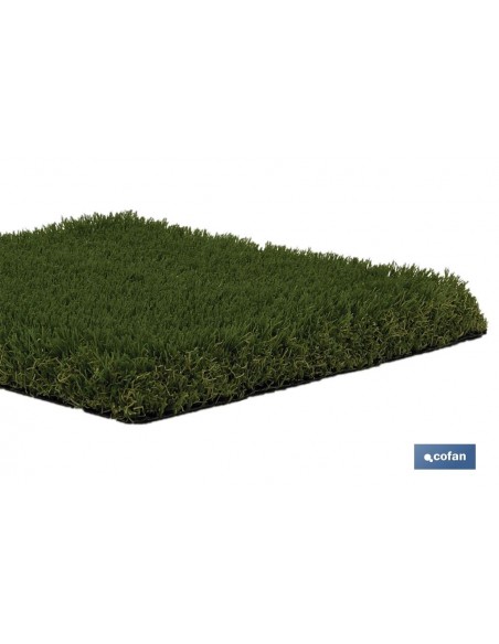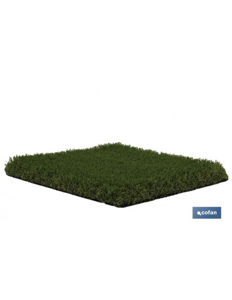 Césped artificial bicolor verde esmeralda y oliva oscuro, fabricado en monofilamento de polietileno de fibra rizada y polipropileno con soporte en látex y polipropileno de fibra corta. Protección extrema contra los rayos UVA, fabricado con componentes químicos no peligrosos para personas. Válido para deporte previa autorización/certificación y para las zonas residenciales y de uso doméstico con niños y mayores. No es tóxico, y se puede reciclar cuando sea sustituido. Fácil limpieza. Con el comienzo del verano y el buen tiempo, se han disparado las ventas del césped artificial. Y es que es un complemento esencial para el paisajismo de terrazas, jardines, zonas de juego y piscinas, ya que cambia su estilismo creando un entorno más veraniego y agradable. Además, con el césped artificial reduces el consumo de agua y energía, entre muchas otras ventajas.