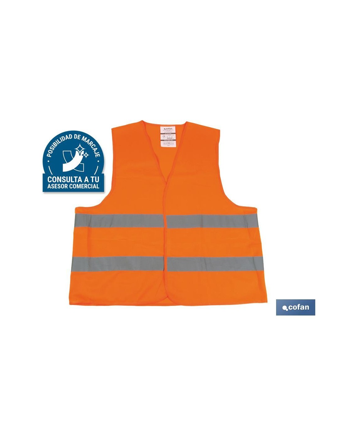 Chaleco, fabricado en poliéster 100 % de alta calidad, garantiza la seguridad en caso de accidentes en las carreteras, autovías o autopistas. Es de color naranja. UNE-EN 20471. Cuenta con una alta visibilidad y se ha diseñado para una talla XXL. Es unisex, por lo que es adecuado tanto para hombres como para mujeres. Incluye unas bandas de alta visibilidad reflectantes y es obligatorio en trabajos realizados en vía pública y en carretera por conductores en situaciones de emergencia. Es muy resistente y duradero. Destaca tu marca en cada prenda con nuestro servicio de marcaje personalizado (Marcaje con tu logo + logo Cofan). Consulta con tu asesor comercial para descubrir todas las opciones disponibles y crear prendas únicas.