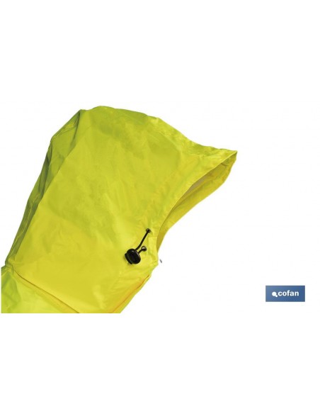 Chaqueta de alta visibilidad, modelo Sagitario, diseñada para enfrentar las inclemencias del tiempo en lugares con poca visibilidad. Fabricada en 100 % poliéster y con costuras termoselladas, esta chaqueta te ofrece una protección contra condiciones climatológicas adversas, como la lluvia, y te mantiene visible en condiciones de poca luz, gracias los colores amarillo y azul de la prenda. Su diseño, que se adapta fácilmente a todo tu cuerpo, cuenta con una capucha oculta en el cuello y una zona de ventilación en las axilas para garantizarte la comodidad durante largas jornadas de trabajo. También tiene un cierre central de cremallera y 2 bolsillos frontales, ocultos mediante una tapeta, para mantener tus pertenencias seguras y secas. La chaqueta cumple con las normas EN ISO 20471:2013+A1:2016 (Clase 3) y EN 343:2019. Disponible desde la talla S hasta la XXXL.