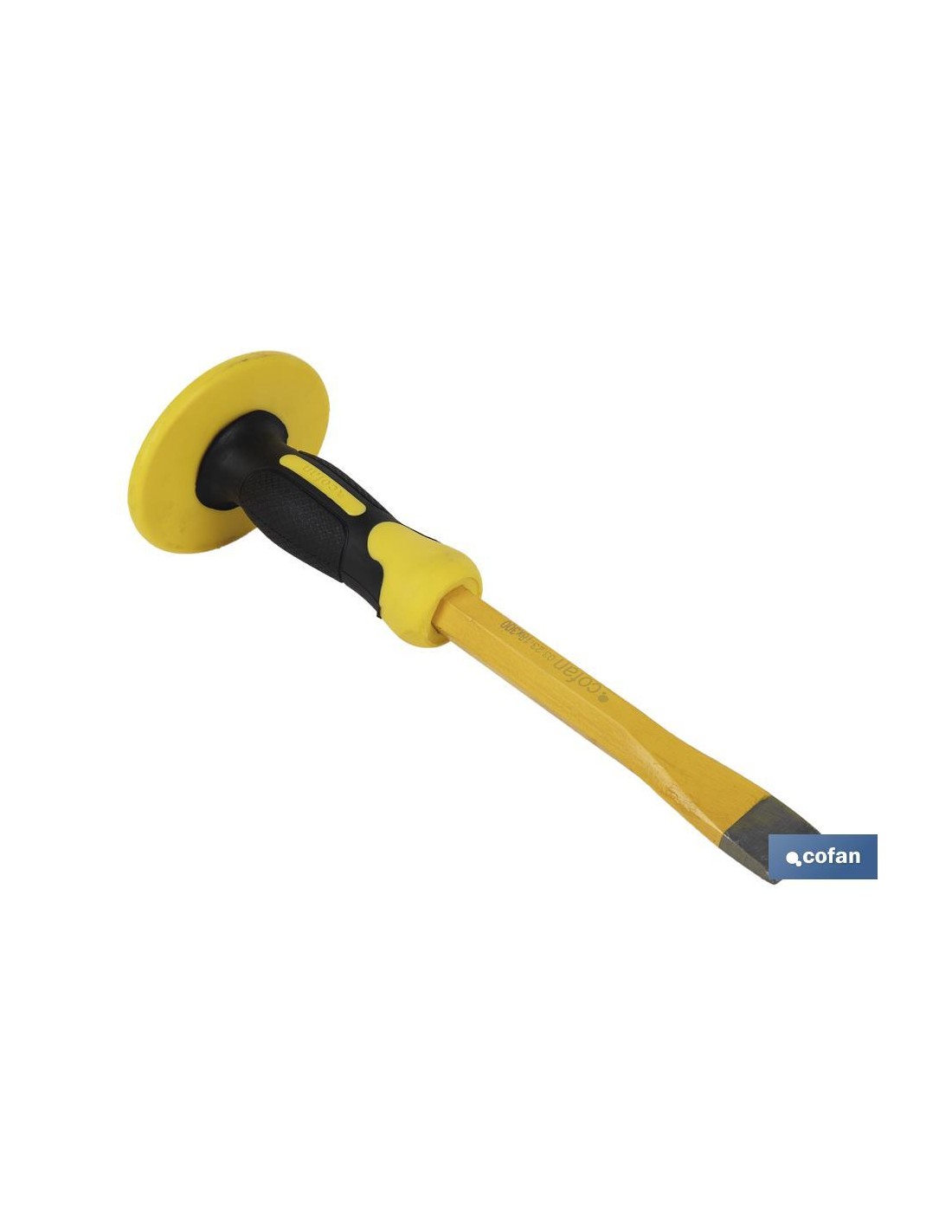 Cincel plano perfecto para pequeños trabajos de construcción. Cuenta con un mango protector para un uso seguro y sin problema. Además, está fabricado en goma y es de color negro. La forma del mango evita que se deslice es muy cómodo y tiene un tamaño compacto. Disponible en varias medidas: desde 16 x 200 mm hasta 20 x 500 mm.