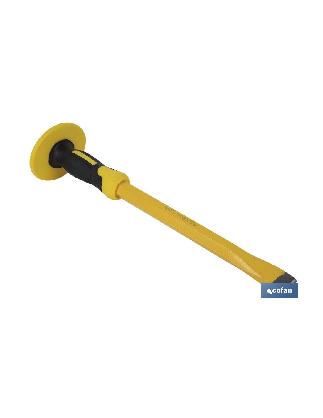 Cincel plano perfecto para pequeños trabajos de construcción. Cuenta con un mango protector para un uso seguro y sin problema. Además, está fabricado en goma y es de color negro. La forma del mango evita que se deslice es muy cómodo y tiene un tamaño compacto. Disponible en varias medidas: desde 16 x 200 mm hasta 20 x 500 mm.