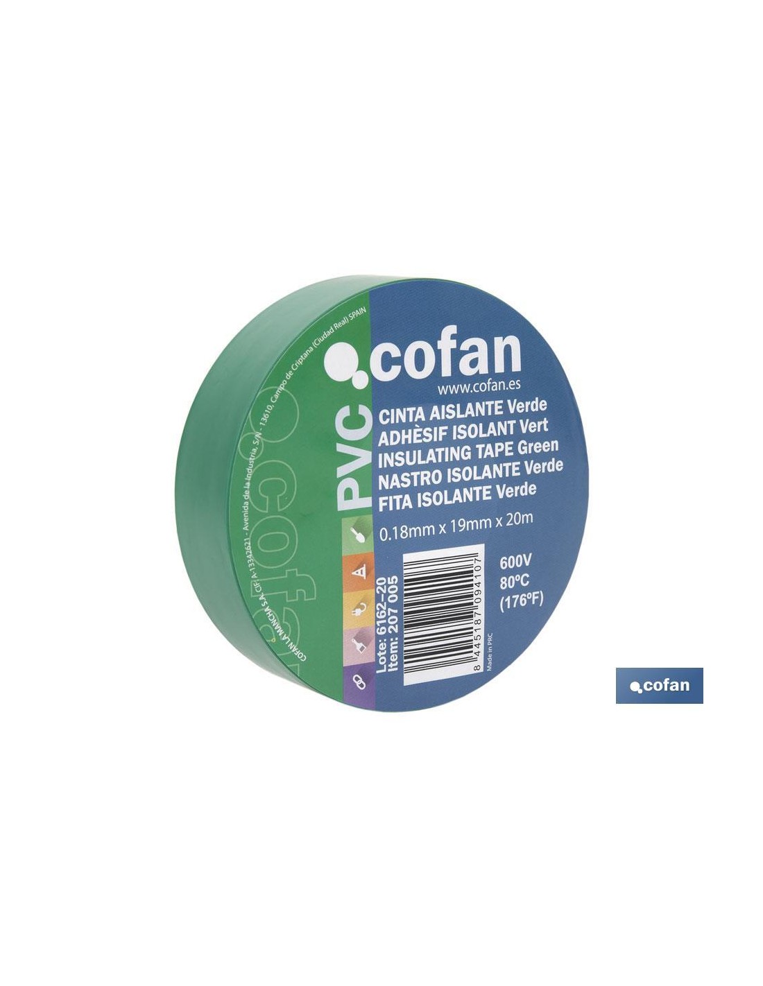 Cinta aislante de color verde. Fabricada en PVC y resistente al voltaje, al calor y a diferentes ácidos y alcalinos. Se usa principalmente para aislamientos eléctricos, así como en el automóvil, la industria de la electrónica y del bricolaje. Tiene 20 metros de longitud y 19 mm de ancho. La cinta se puede cortar en pedazos y en cualquier forma que desee. Es fácil de pegar y quitar sin dejar residuos de pegamento y fácil de operar. Puede utilizarla un electricista profesional, un ingeniero o un trabajador del bricolaje. Es apta para cables empalmados, agrupación de cables, aislamiento de cables, etc.
