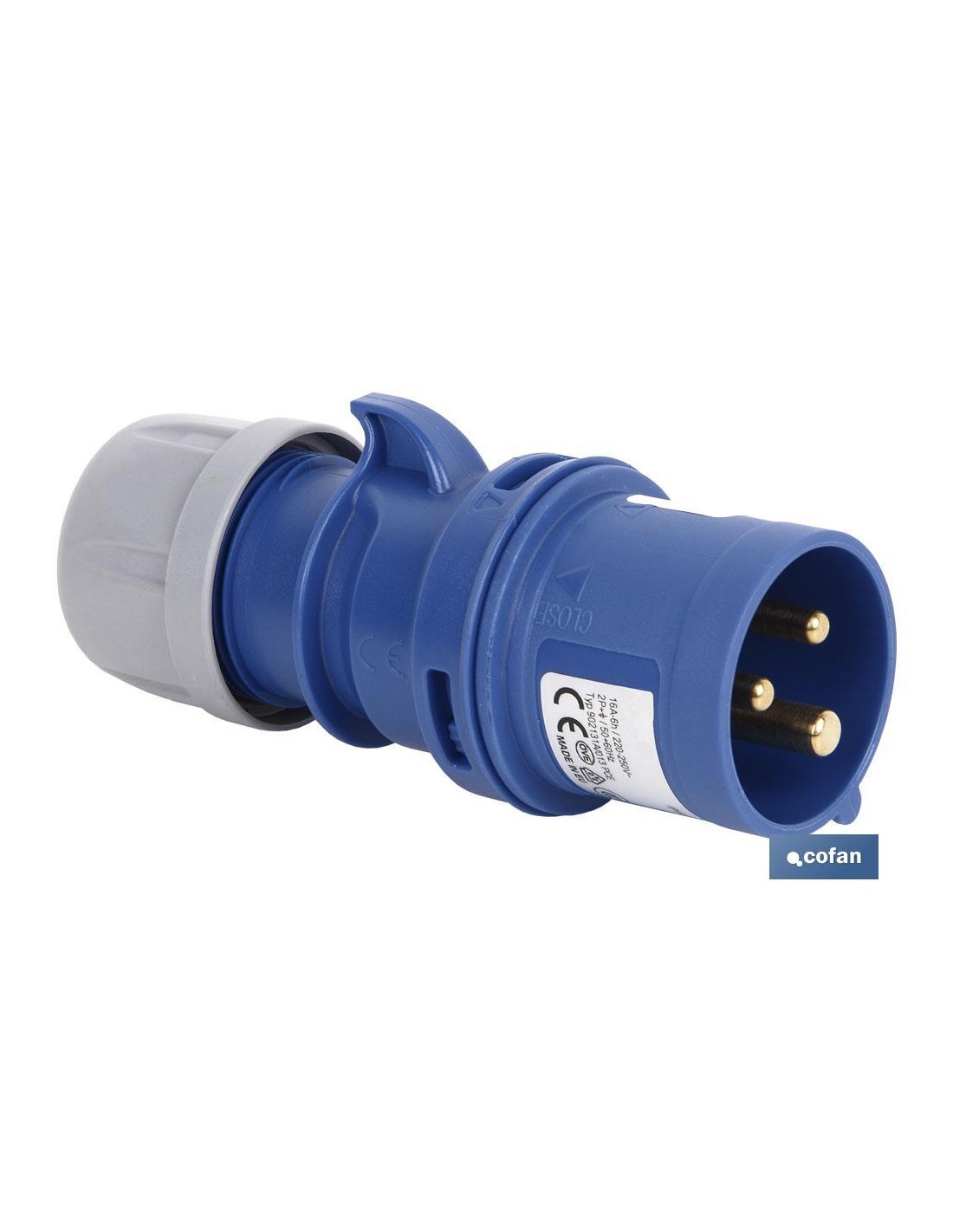 Clavija móvil industrial. IP44. Corriente y tensión nominal de 16 A - 230 V. Embornamiento con tornillos. Resistencia al fuego de las partes activas (ensayo del hilo incandescente 850°C). Estabilidad dimensional -25°C a +80°C. Muy recomendable para su uso en exteriores como jardines, agrícola o campings.