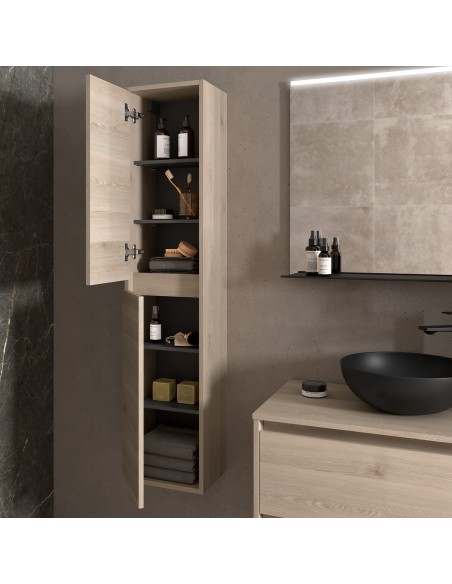 Pilar Noja está concebido con un diseño atemporal que hará de tu cuarto de baño una estancia elegante y funcional aumentando la capacidad de almacenaje en vertical para guardar de la forma más eficiente todos los productos de higiene.