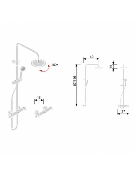 • Rociador extraplano Ø 20,5 cm con giro de 180º