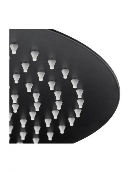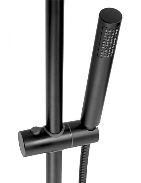 Cilíndrico conjunto ducha termostático sin apenas relieves y elegante acabado negro electrochapado.