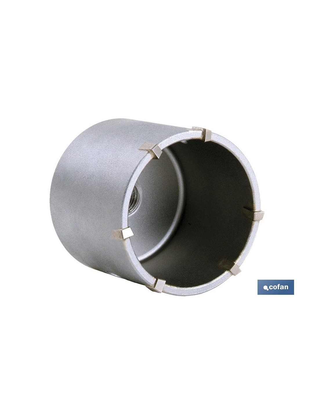 Corona para construcción con dientes de carburo al tunsgteno para taladros percutores y de martillo SDS PLUS. APLICACIONES: Hormigón, granito, cemento, ladrillo, etc.