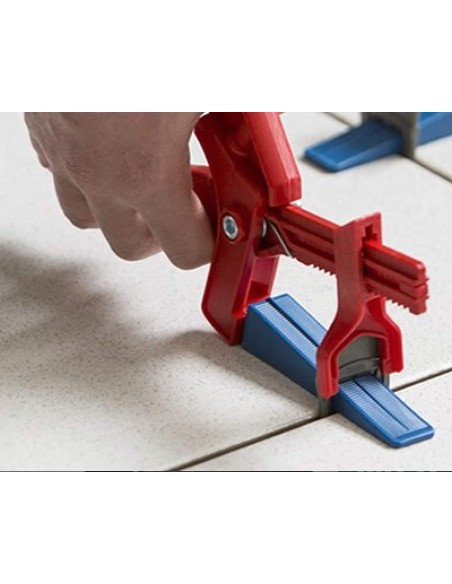 La cuña es la pieza de plástico que se recupera del sistema de nivelación por cuñas, que se coloca dentro del calzo para hacer presión y nivelar.