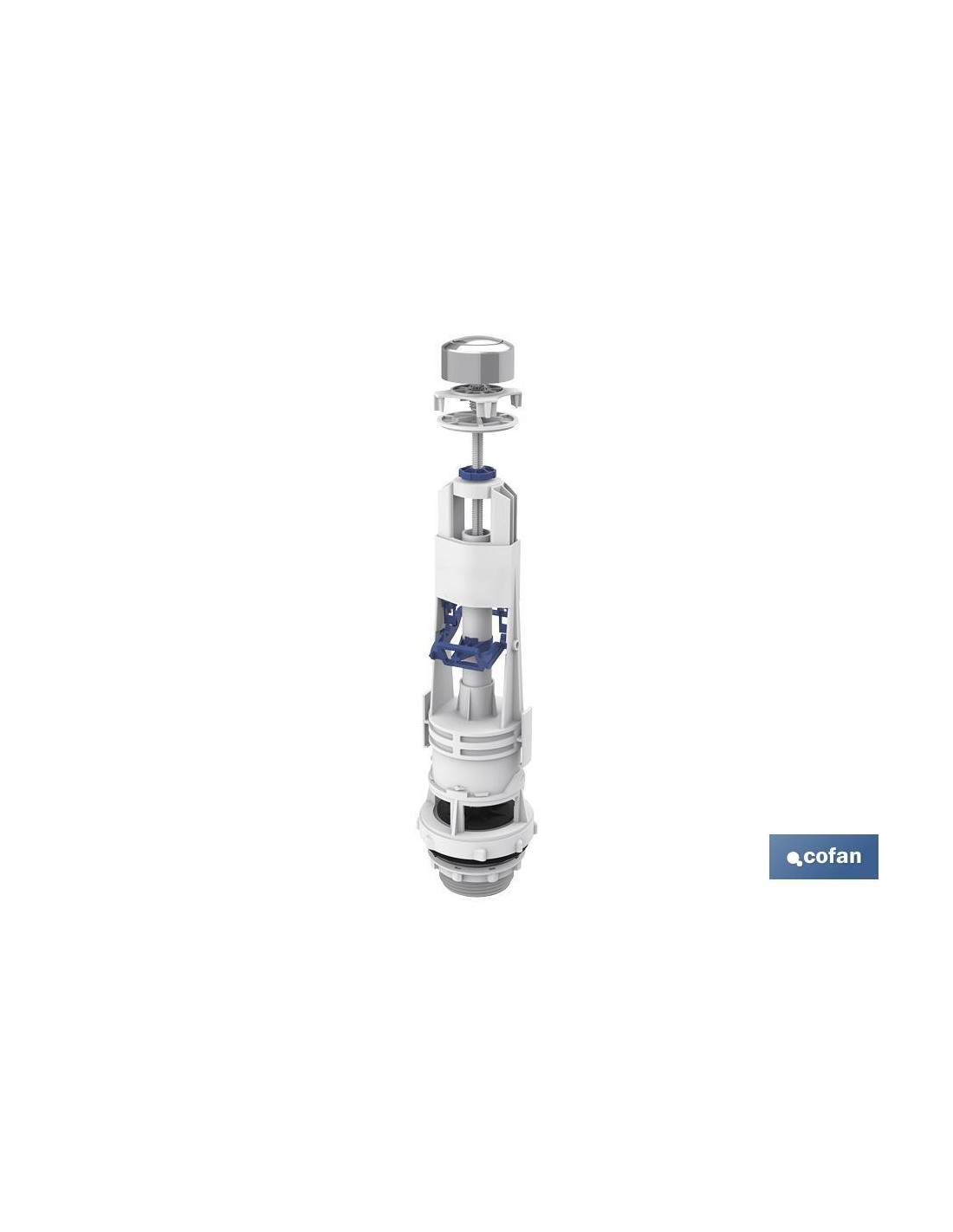 Descargador con mecanismo interrumpible fabricado en materiales plásticos de alta calidad y anti calcáreos. Este diseño universal es compatible con todas las cisternas de cerámica. Su mecanismo permite una fácil instalación sin necesidad de desmontar la cisterna ni utilizar herramientas. Cuenta con un pulsador ajustable en altura. Con este descargador conseguirás un ahorro en el consumo de agua gracias a su mecanismo interrumpible.