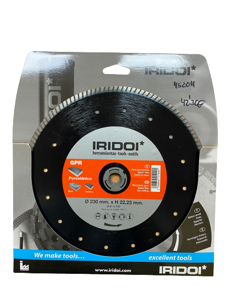 Disco profesional GPR de 230mm de diámetro. Apto para corte en porcelánico, gres y cerámica.