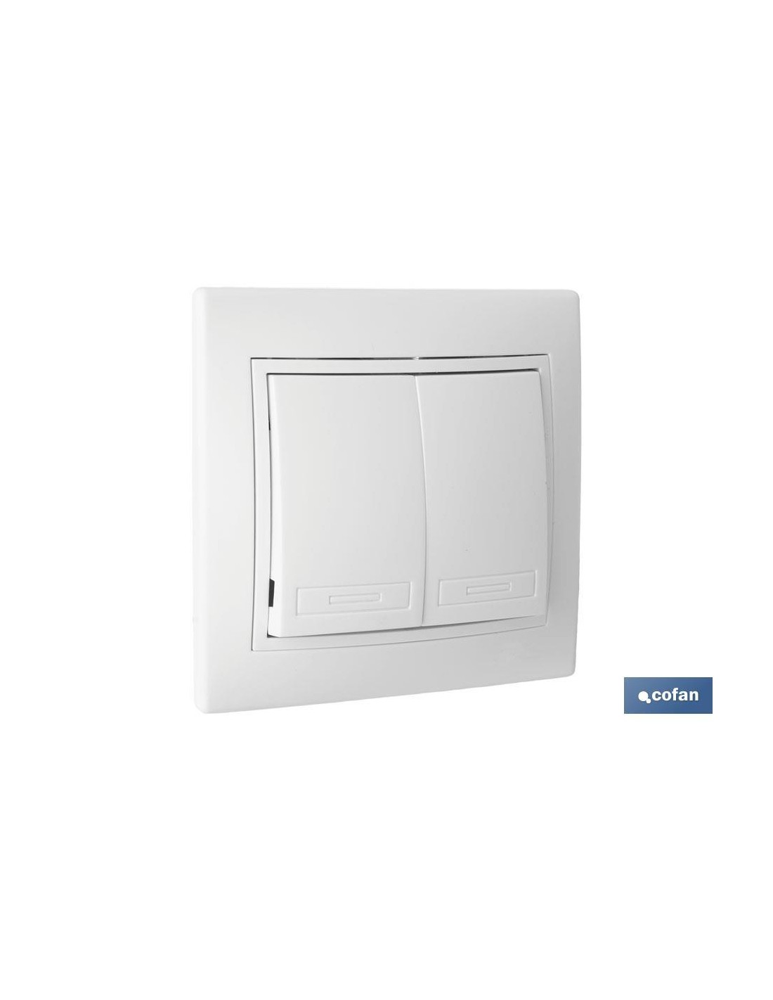 Mecanismo doble interruptor-conmutador de empotrar en color blanco. Compatible con todas las cajas de conexiones. Modelo Pacific. Características: 10 A 250 V.
