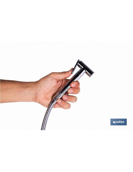 Ducha higiénica para inodoro diseñada para proporcionar tanto agua caliente como fría, convirtiéndose en un accesorio elegante y funcional para quienes buscan un baño más práctico y minimalista. Este grifo cuenta con un cuerpo robusto fabricado en latón que aporta un toque moderno y sofisticado a cualquier baño, y un mango ergonómico de zinc que facilita su uso garantizando un control preciso del flujo de agua. Además, dispone de una manguera fabricada en acero inoxidable de 1,2 metros de longitud que ofrece resistencia y durabilidad. Con unas medidas compactas de 13 x 7,5 x 10 cm, este grifo bidé empotrado es ideal para baños de cualquier tamaño, pues su instalación sencilla y discreta no sacrifica el estilo. Disponible en acabado negro y cromado.