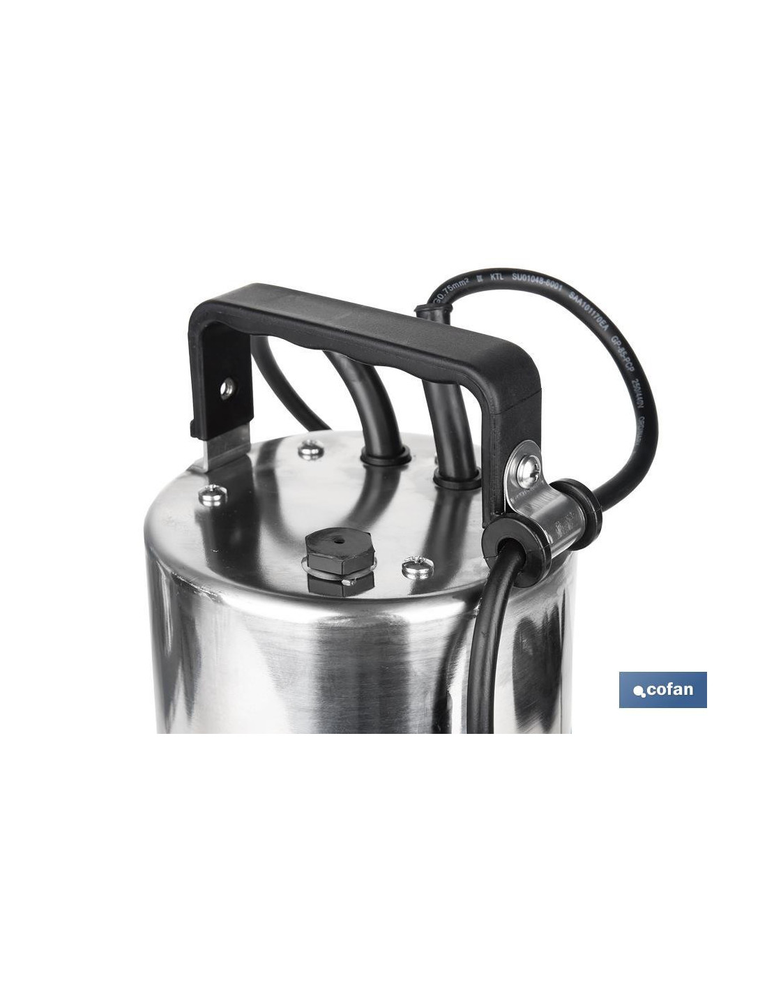 Electrobomba sumergible, modelo Lousiana, indicada para la extracción de aguas sucias. Con una potencia de 750 W, está diseñada para ofrecer un rendimiento superior. Cuenta con un caudal máximo de 13.000 litros por hora y puede bombear a una altura de hasta 7,5 metros. Su capacidad de inmersión de hasta 7 m y su salida de 1 1/2 la hacen ideal para diversas aplicaciones domésticas y profesionales. Fabricada con una carcasa de acero inoxidable resistente a la corrosión, esta bomba está preparada para mover impurezas de hasta 35 mm, lo que la convierte en una herramienta versátil. Además, cuenta con un sistema de arranque y de parada automático mediante un interruptor de flotador que evita que la bomba se sobrecaliente durante el funcionamiento en vacío. La electrobomba tiene un cable de 10 metros de longitud para aportar flexibilidad a la hora de conectar la herramienta, además de un asa ergonómica que permite manejar fácilmente la bomba sin tirar del cable. Sus dimensiones compactas, 20 x 28 x 29,5 cm, y su peso 5,5 kg, permiten un uso eficiente de la electrobomba en espacios reducidos. Esta electrobomba es la solución ideal para quienes buscan una herramienta eficiente y duradera para bombear aguas sucias.