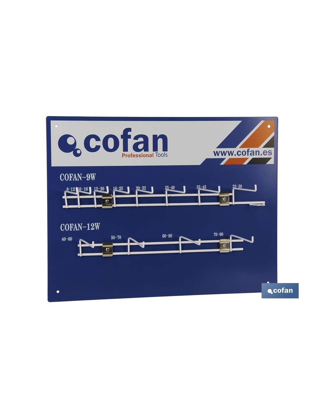 Expositor para 120 abrazaderas + destornillador flexible. Fleje 9 mm y 12 mm. Medidas de 8-12 hasta 70-90. También tiene la posibilidad de conseguir únicamente el expositor (material no incluido).