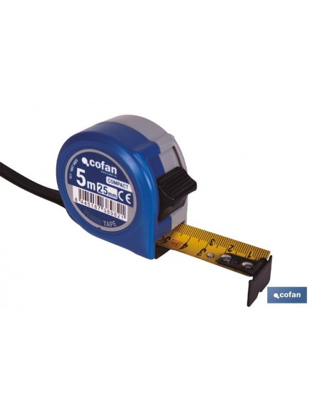 Flexómetro estándar | Carcasa resistente de ABS | Botón de bloqueo | Gancho no magnético | Funda antichoque | Disponible con ci