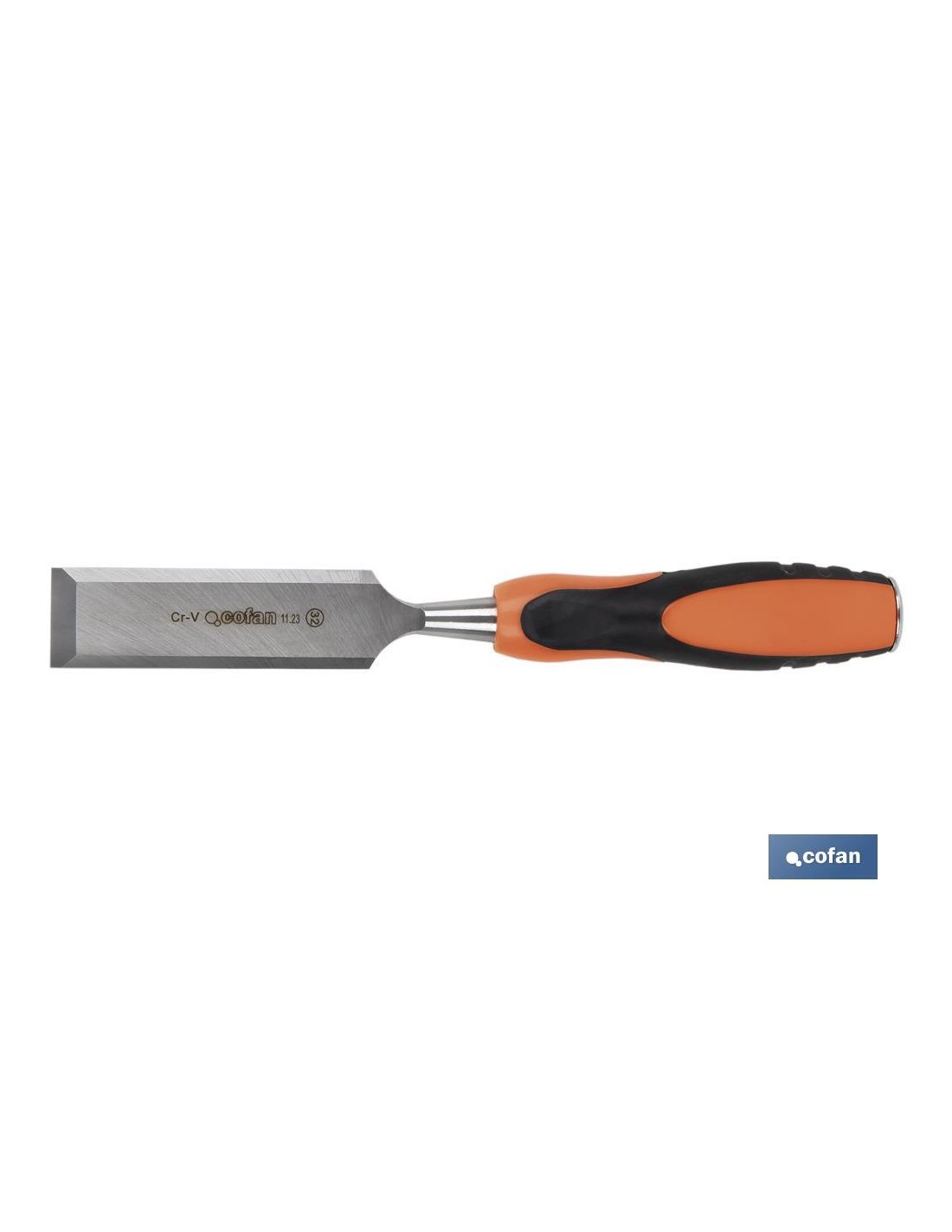 Formón con mango bimaterial y cuchilla de corte reafilable, adecuado para utilizar en trabajos de carpintería, ya sea con madera gruesa o fina.Los formones con mangos bimateriales son populares entre carpinteros y artesanos debido a su ergonomía y eficacia en el trabajo de la madera. Cuenta con placa de golpeo trasera en metal y un mango ergonómico muy cómodo y ajustable a la mano, que proporciona un agarre antideslizante.Su cuchilla está fabricada en acero al cromo-vanadio y es muy resistente al calor. La hoja y el mango están fusionados térmicamente para mayor resistencia. Medidas de ancho de corte desde 6 mm hasta 35 mm.