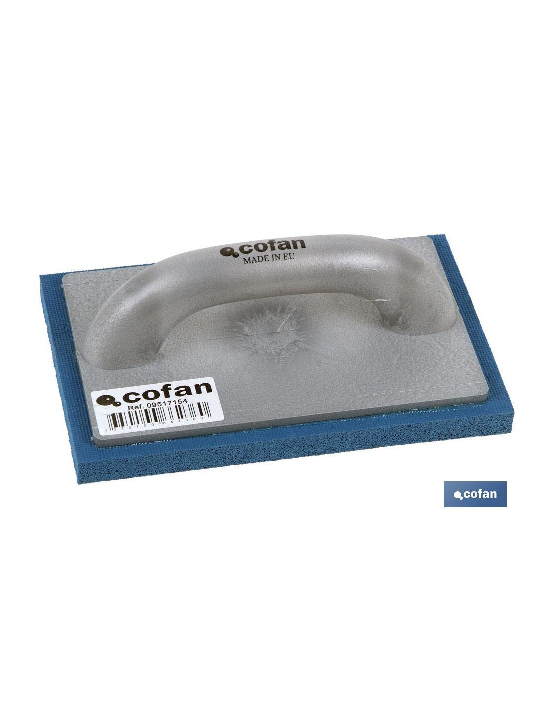 Fratás o llana con esponja densa en color azul disponible en varias medidas. Cuenta con un mango fabricado en fibra de vidrio muy cómodo, ligero, ergonómico y antideslizante. Se utiliza para trabajos de construcción. Es una herramienta de acabado y los alicatadores la utilizan en la fase final para limpiar adecuadamente las juntas entre baldosas. Es muy práctica y puede utilizarse con una sola mano. Es un componente manual necesario para que los profesionales puedan desempeñar correctamente su profesión.