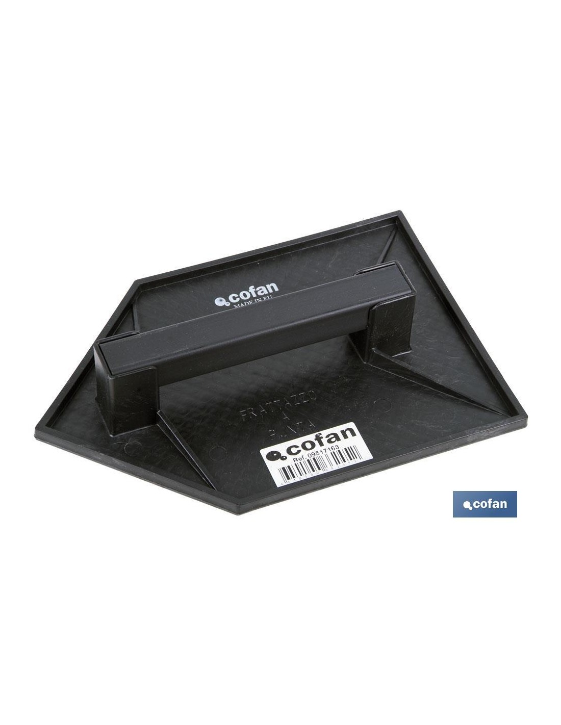 Fratás fabricado en plástico de alta calidad, en color negro y con punta en forma triangular. Su medida disponible es de 270 x 180 mm. Su mango es muy cómodo, ligero, ergonómico y antideslizante a la hora de usarlo. Es ideal para el sector de la construcción, ya que se utiliza para repasar superficies de cementos como paredes, fachadas y suelos. Este artículo también es conocido como «llana», «plana» o «talocha». Es muy práctico ya que puede utilizarse con una sola mano. Es un componente manual necesario para que los profesionales puedan desempeñar correctamente su profesión.