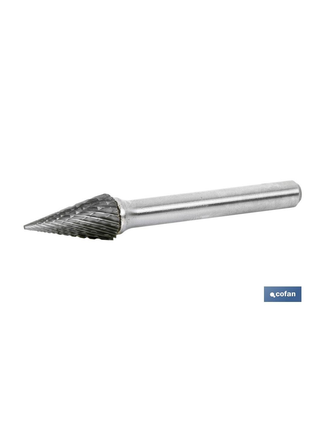Fresa rotativa punta cónica de metal duro y dentado cruzado, con punta en forma cónica y cabeza de 3 a 12 mm de diámetro